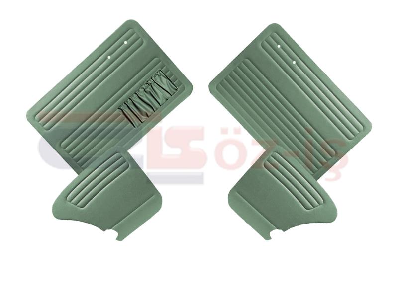 VW OLD BEETLE 1300 olarak adlandırılan Ülkemizde vosvos, kaplumbağa, tosbağa gibi isimler ile anılan aracın kapı döşemeleri 4 Parçadan oluşur 2 adet ön kapılar (Sol kapıda cep bulunur) 2 adet arka paneller. Kapı panelleri üzeri