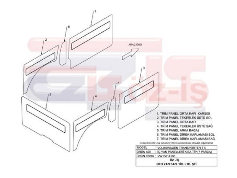 VW T5 VW TRANSPORTER T5 YAN DÖŞEME T5 DÖŞEME VW T5 İÇ DÖŞEME TRANSPORTER DÖŞEME VW DÖŞEME T5 PARÇA